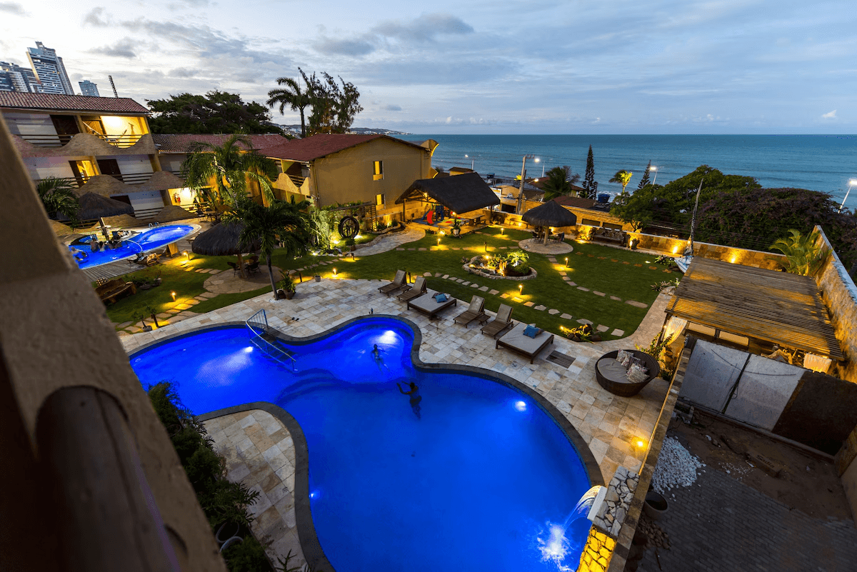 Hotel boutique à beira-mar em Ponta Negra, com arquitetura charmosa, clima romântico, piscina, spa e restaurante gourmet de frutos do mar.