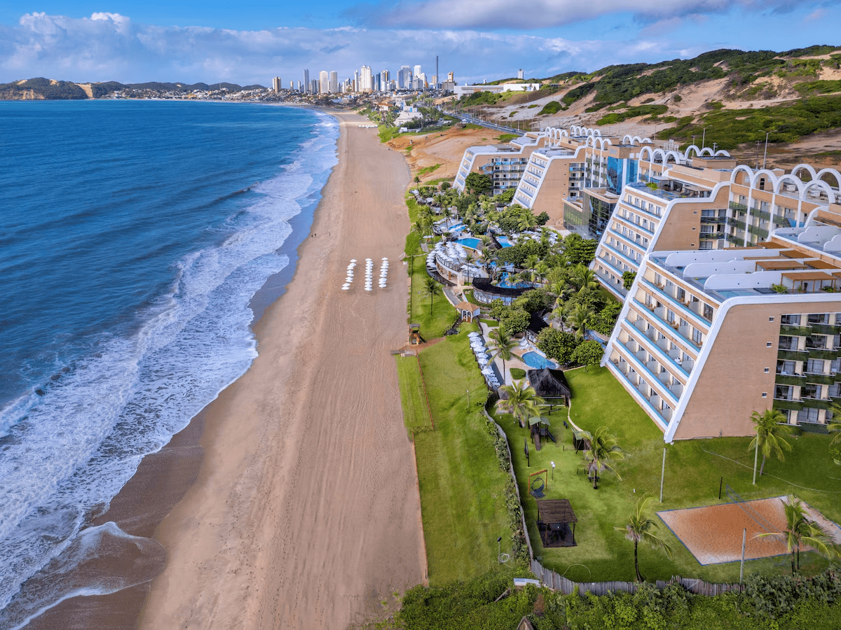 Hotel de luxo à beira-mar na Via Costeira de Natal, com vista para o Morro do Careca, lazer completo e gastronomia variada, ideal para famílias e casais.